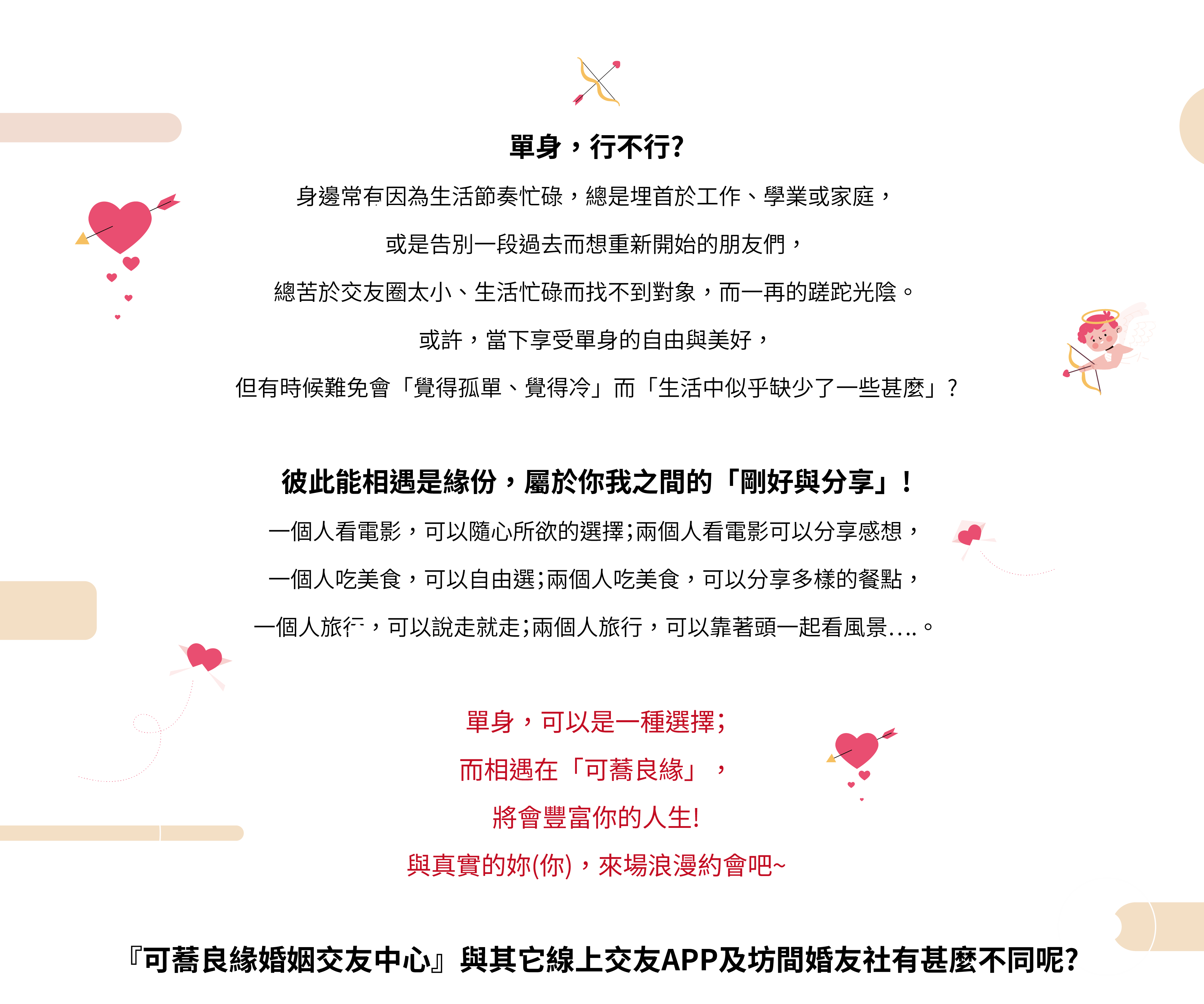 【異業合作】 『可蕎良緣』以促進單身朋友增加交友機會為宗旨,任何各單位/餐廳/政府機關/公益團體等,均可洽談任何形式的合作及聯誼活動,歡迎各界提案合作或贊助。 立即加入官方 LINE@ 獲得更多即時訊息唷!